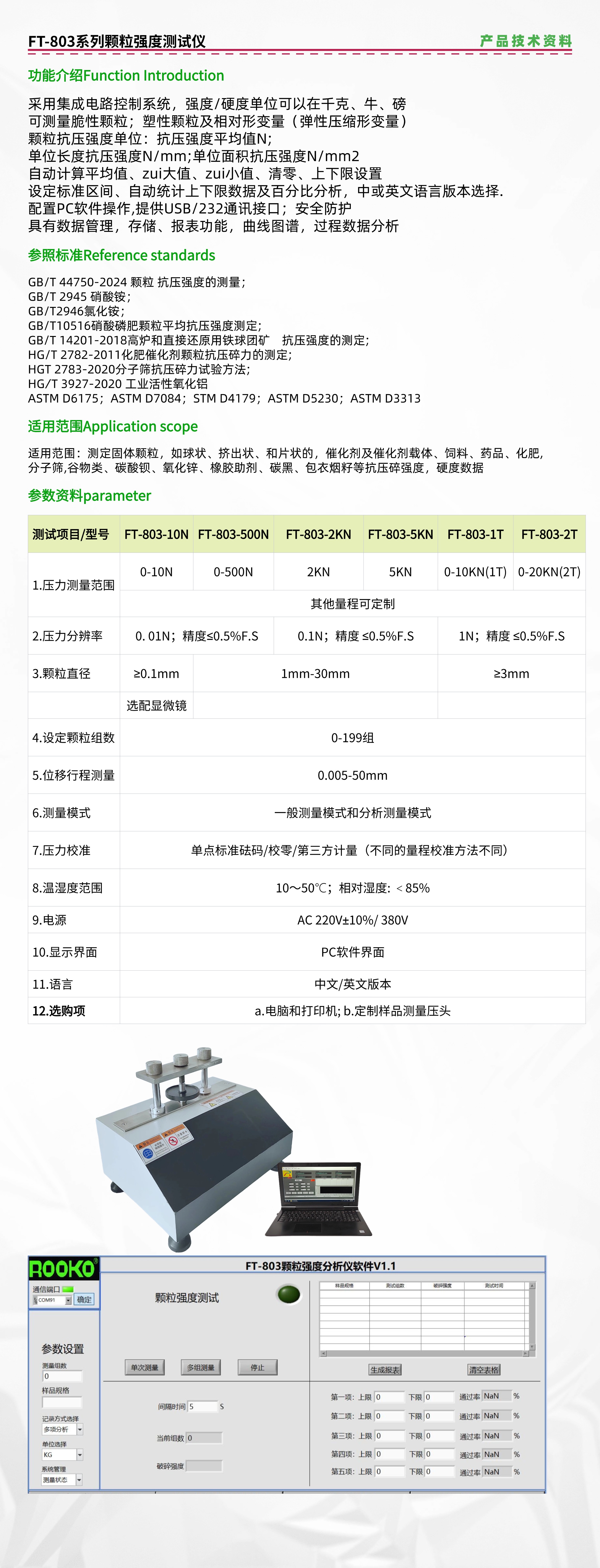 提供力學(xué)參數(shù):為土木工程、建筑設(shè)計等提供關(guān)鍵力學(xué)參數(shù)。如在道路建設(shè)中,通過測定路基材料的顆粒強(qiáng)度,可評估其承載能力和穩(wěn)定性,為道路設(shè)計提供依據(jù),確保道路使用壽命和安全性。