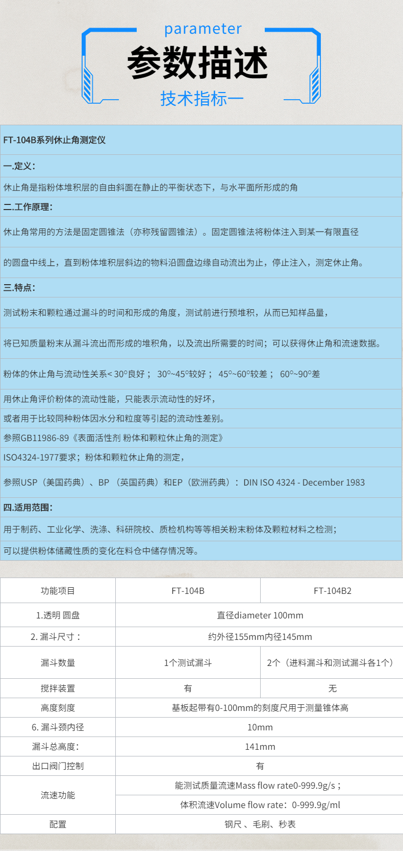 It was designed and manufacured According to GB11986-89 "determination of surfactant powder and particle angle of repose "