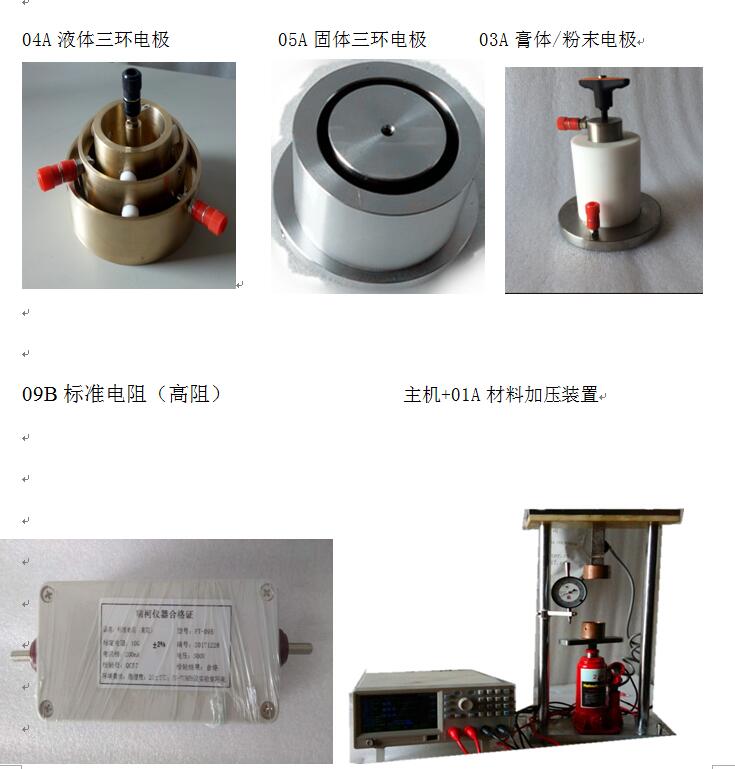 A型:固體狀三環(huán)電極裝置;B型:粉末狀加壓裝置 C型:棒狀測量電極裝置