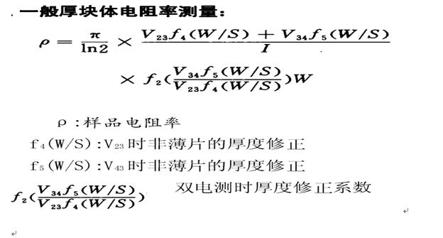 當(dāng)電流通過(guò)1、4探針,2、3探針測(cè)試電壓時(shí)計(jì)算如下: