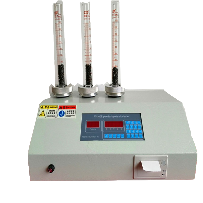 頻率和振次數字顯示,并可以調節;配備自動計算功能和打印機系統,具有保護設定功能,存儲功能,平均值計算功能,能打印出測試時間(年月日時分秒)質量、體積、振實密度值,平均值及測試編號等數據功能;同時具備振動次數和振動時間兩種測量模式;通過定體積組合量筒測試松裝密度,可以獲得豪斯納比和壓縮度數據