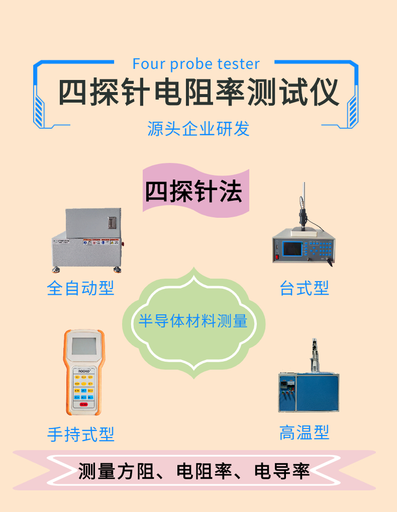 硅片電阻率測量的標準(ASTM F84)及國家標準設計制造;GB/T 1551-2009 《硅單晶電阻率測定方法》、GB/T 1552-1995《硅、鍺單晶電阻率測定直流四探針法》.
