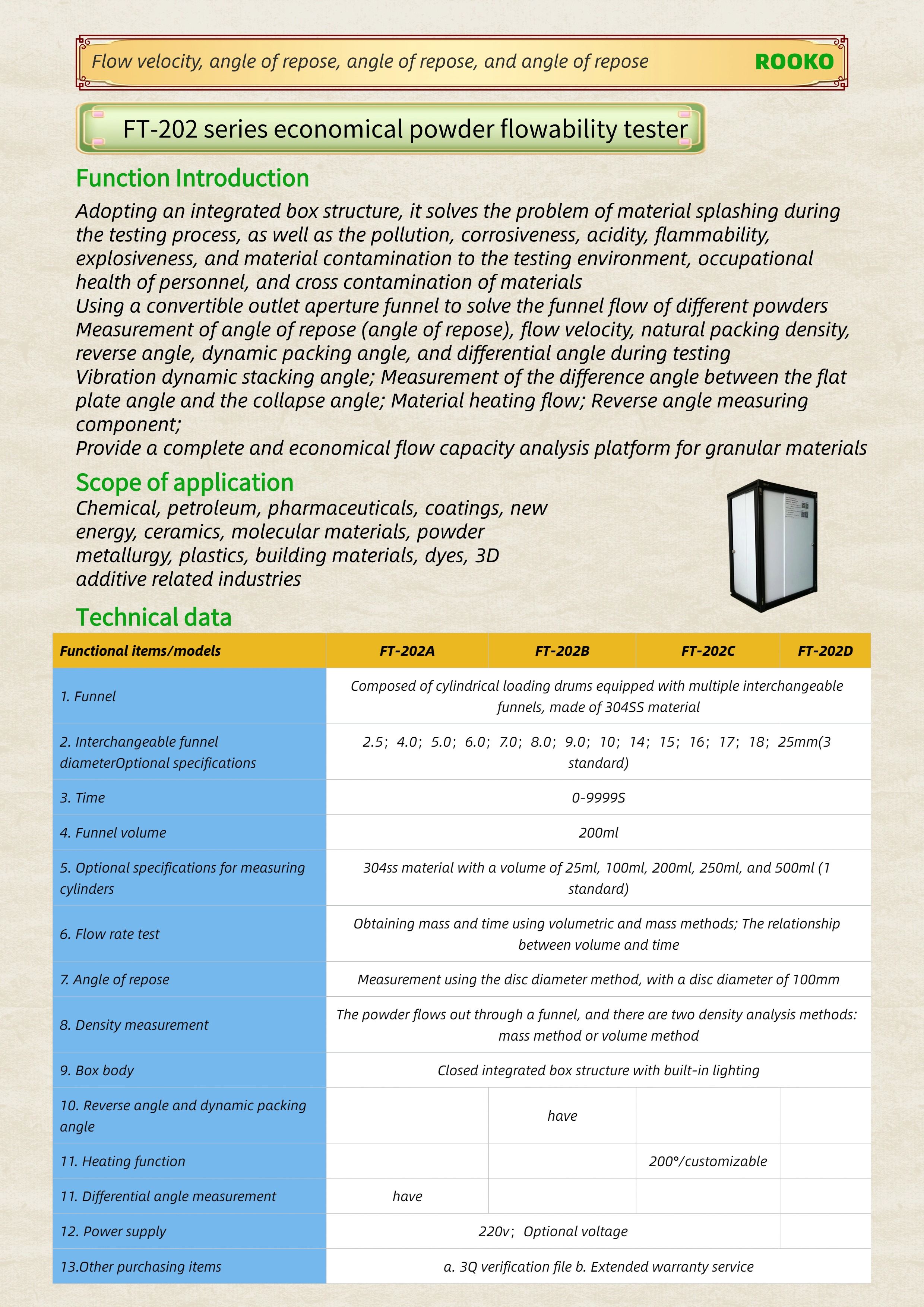 FT-202 series economical powder flowability tester